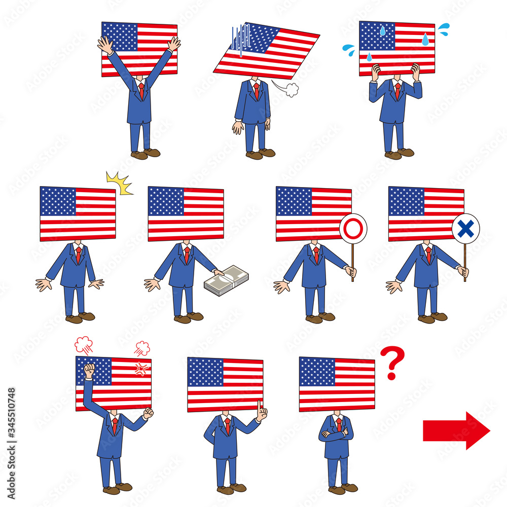 アメリカ 国旗 キャラクター 擬人化 セット 表情 ポーズ 右方向向き Stock ベクター Adobe Stock